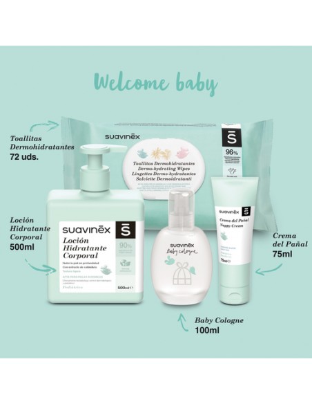 Canastilla Suavinex de regalo con productos de hidratación para bebé.